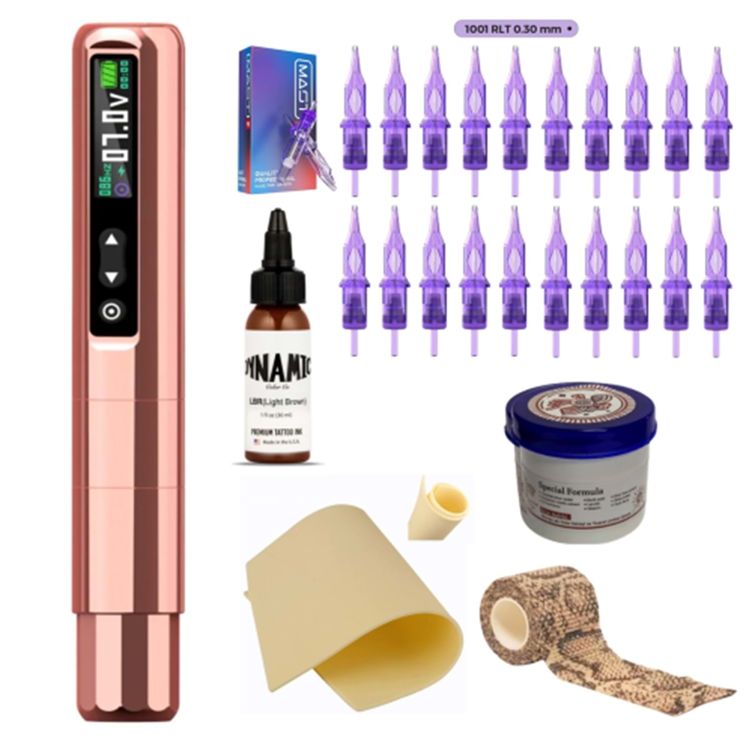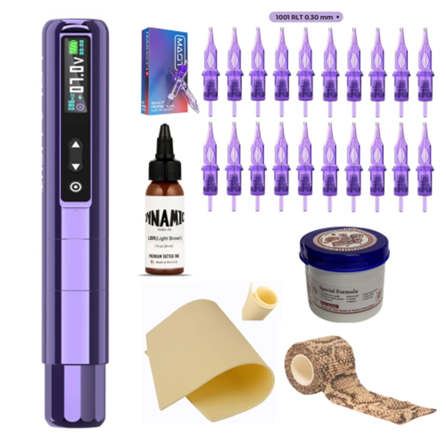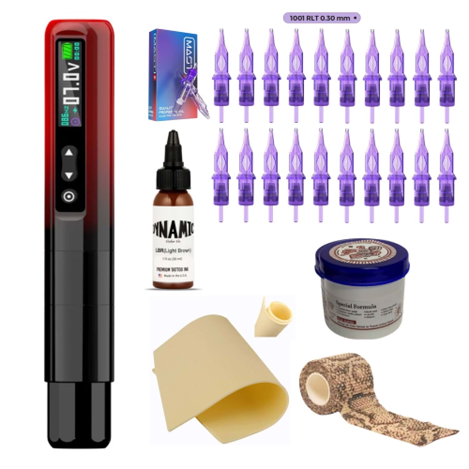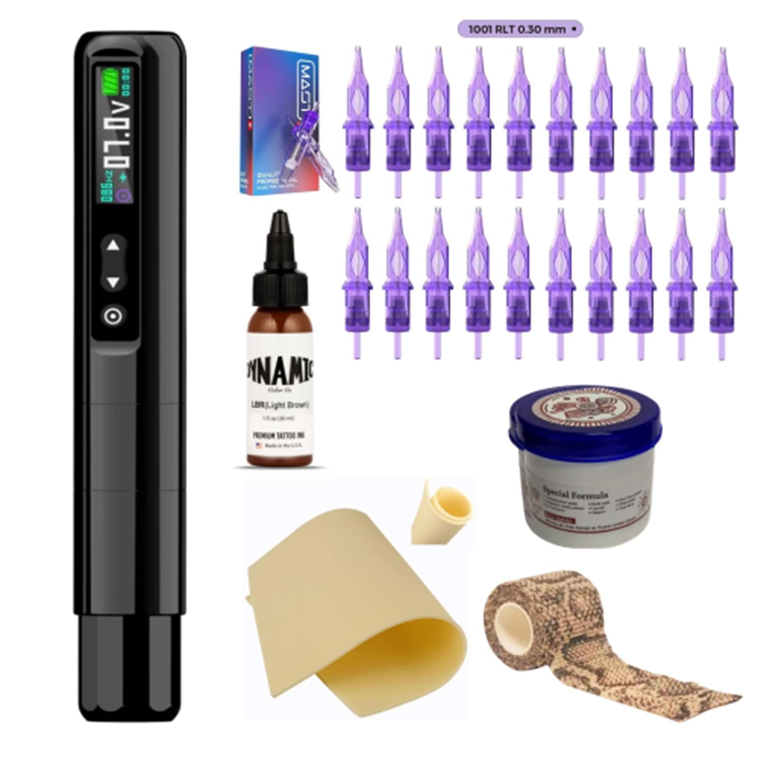 Bu set, dövme işlemlerinde hassasiyet ve kontrol sağlamak için gerekli tüm araçları bir araya getirir. Hem profesyonel sanatçılar hem de yeni başlayanlar için mükemmel bir seçimdir.