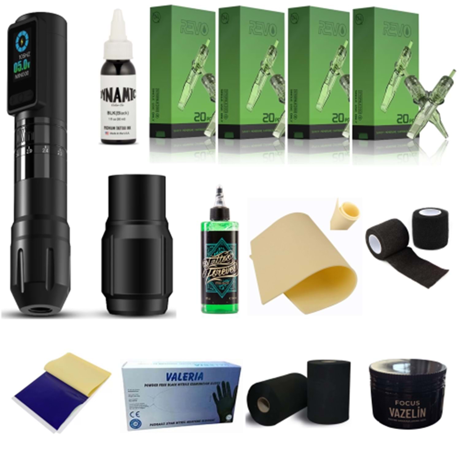 Bu set, dövme işlemlerinde hassasiyet ve kontrol sağlamak için gerekli tüm araçları bir araya getirir. Hem profesyonel sanatçılar hem de yeni başlayanlar için mükemmel bir seçimdir.